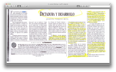 no sólo por su abierto y descarado apoyo al tirano genocida de la extrema derecha General Augusto Pinochet a quien alabó ampliamente en el siguiente editorial publicado en El Economista y firmado por ella en su calidad de “economista y consejera de Coparmex” (la foto se puede ampliar para leerse el trabajo en mayor detalle):